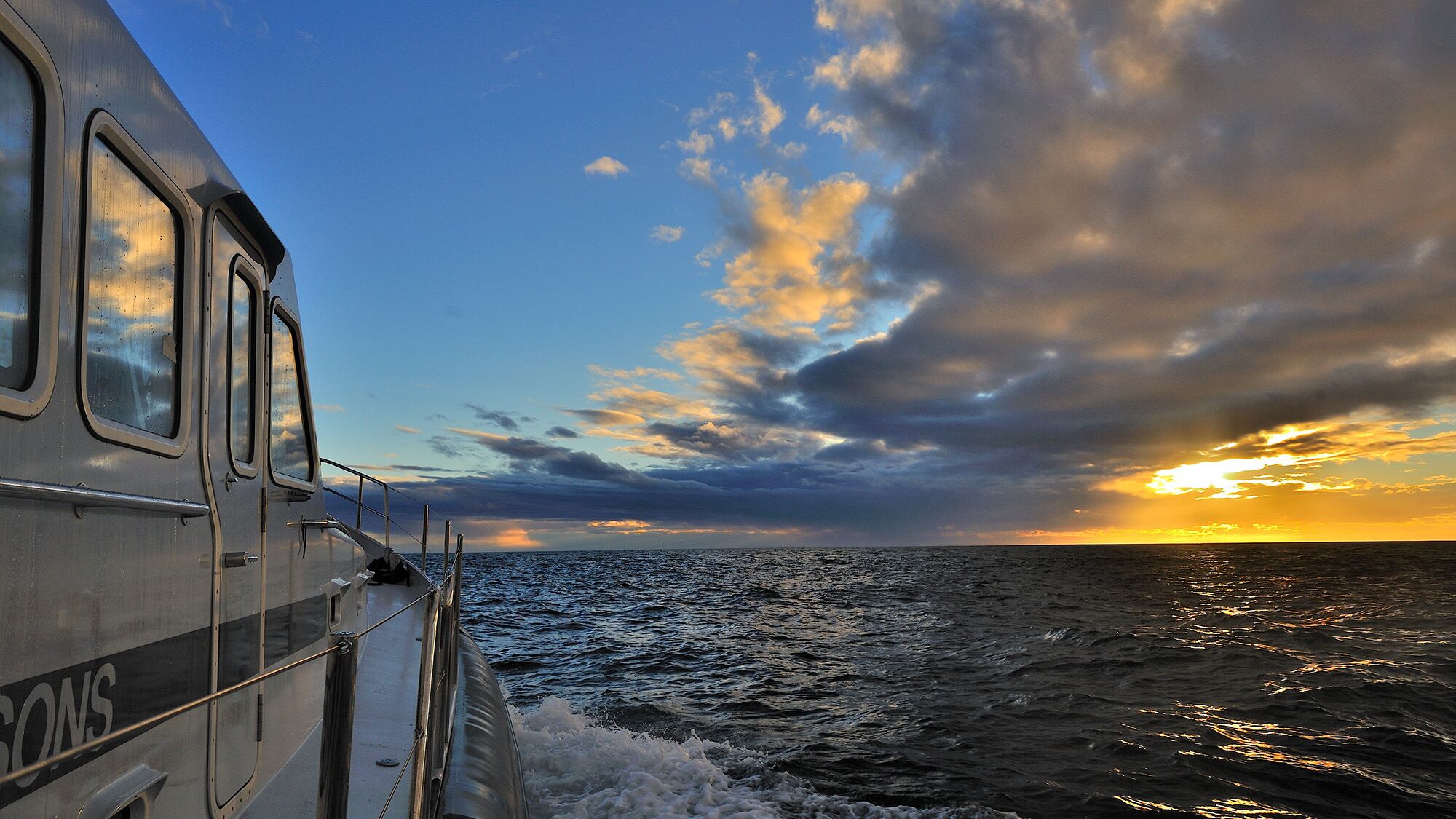 After 650 miles of sailing—the longest leg of our trip—we see the first signs of land emerge on the western horizon. Labrador breaks away from the sea. Behind us, on a blood orange horizon, the sun is losing a fight with heavy cloud cover and in front of us the land seems to be winning its fight. After over 80 hours of sailing in varying weather conditions, with waves as high as 15-feet, and heavy rolling, we are thrilled to see the mainland again. However, cruising through deep ocean water has the advantage of a longer and therefore quieter wave pattern, unlike the relatively shallow coastal waters with their short and feisty waters. This time we haven’t seen any ship for the entire journey. We did come upon a whale at a respectable distance blowing its breath into the air and we saw a group of dolphins, gliding smoothly through the water, ignoring us completely. Total tranquility, beautiful skies, and the omnipresent seagulls, even out in the middle of the ocean.