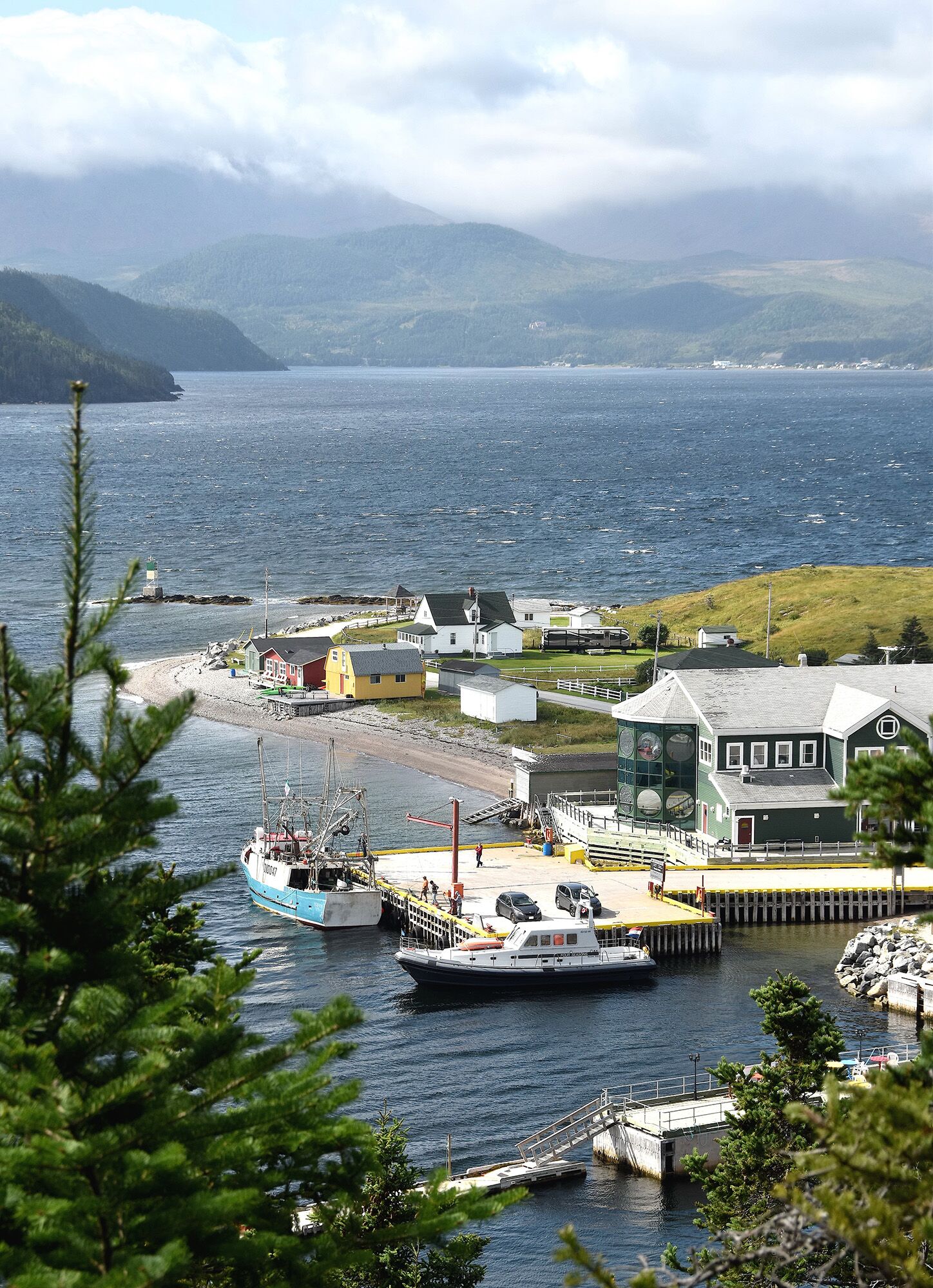 We are nearing the bay of Rocky Harbor, but we decide to sail a little farther to Norris Point, lying somewhat more secluded between the slopes of what is actually considered a fjord. Situated at the Gros Morne National Park, these deep waters were formed eons ago by enormous glaciers during the last ice age. The slopes of the Fjord are green and wooded with coniferous trees. Clouds cover the mountain tops and sunlight peeks through, playing with the deep, cold waters that freeze over in winter. Norris Point is picturesque: a community with an eatery by the harbor, a jetty for the excursion boats, and an aquarium on the other side. We find a good spot to moor at the quay and admire the impressive view. Dozens of tourists who are going on a fjord tour are unloaded by the many charter buses. We attract their attention and they approach us, curious to learn about our journey and Four Seasons. We decide to let the idea slide to sail the 400 miles to Halifax the next day. The remnants of Florida Hurricane Hermine, now reduced to only a storm, are still creating heavy winds and 10- to 15-foot seas. The captain of a neighboring fishing trawler informed us that he’s not going to waste any fuel on the wild sea and is planning to leave the day after tomorrow.
