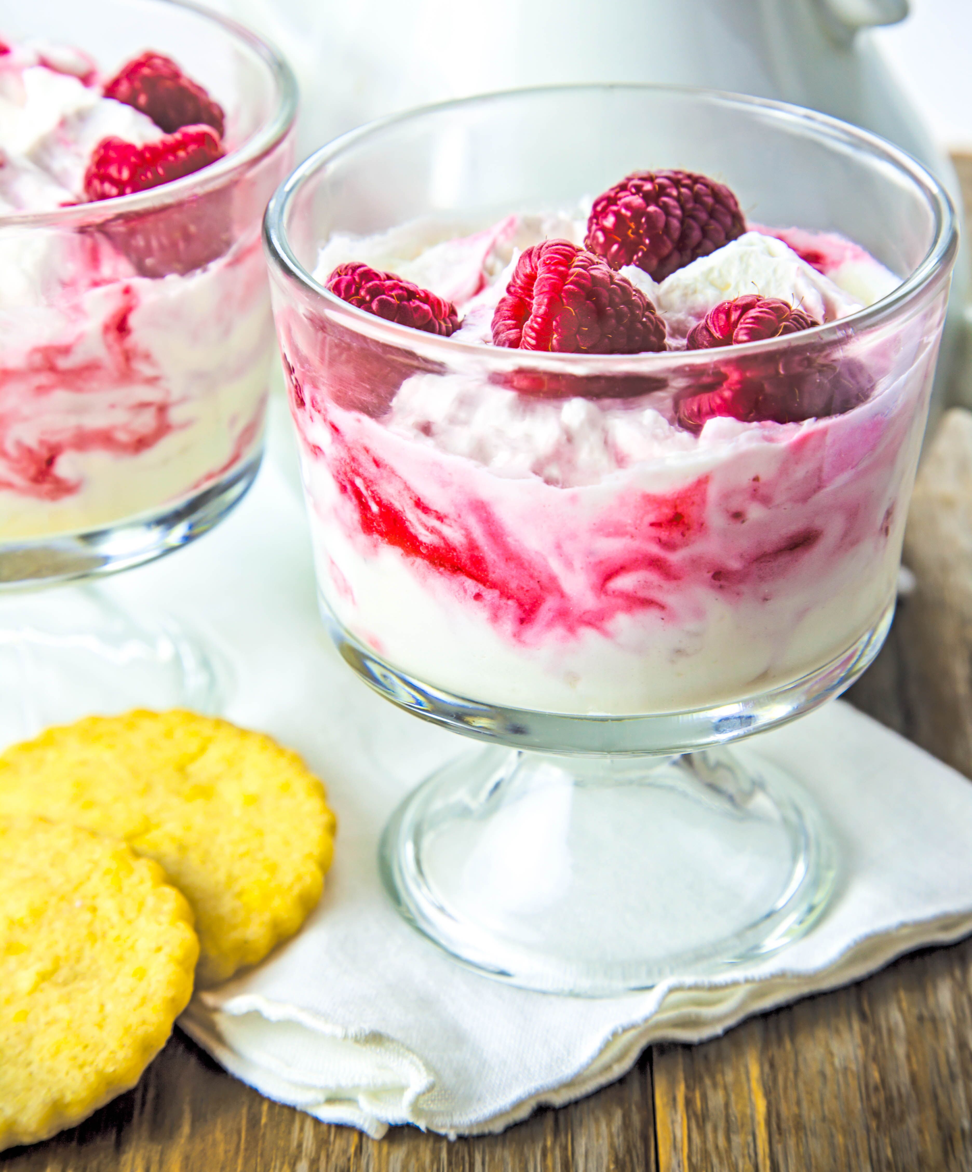 Raspberry fool is such an easy dessert to make. It’s elegant, creamy, light and so pretty, too. Dollop this magical mixture into your nicest stemware or a clear glass dish for a beautiful presentation.