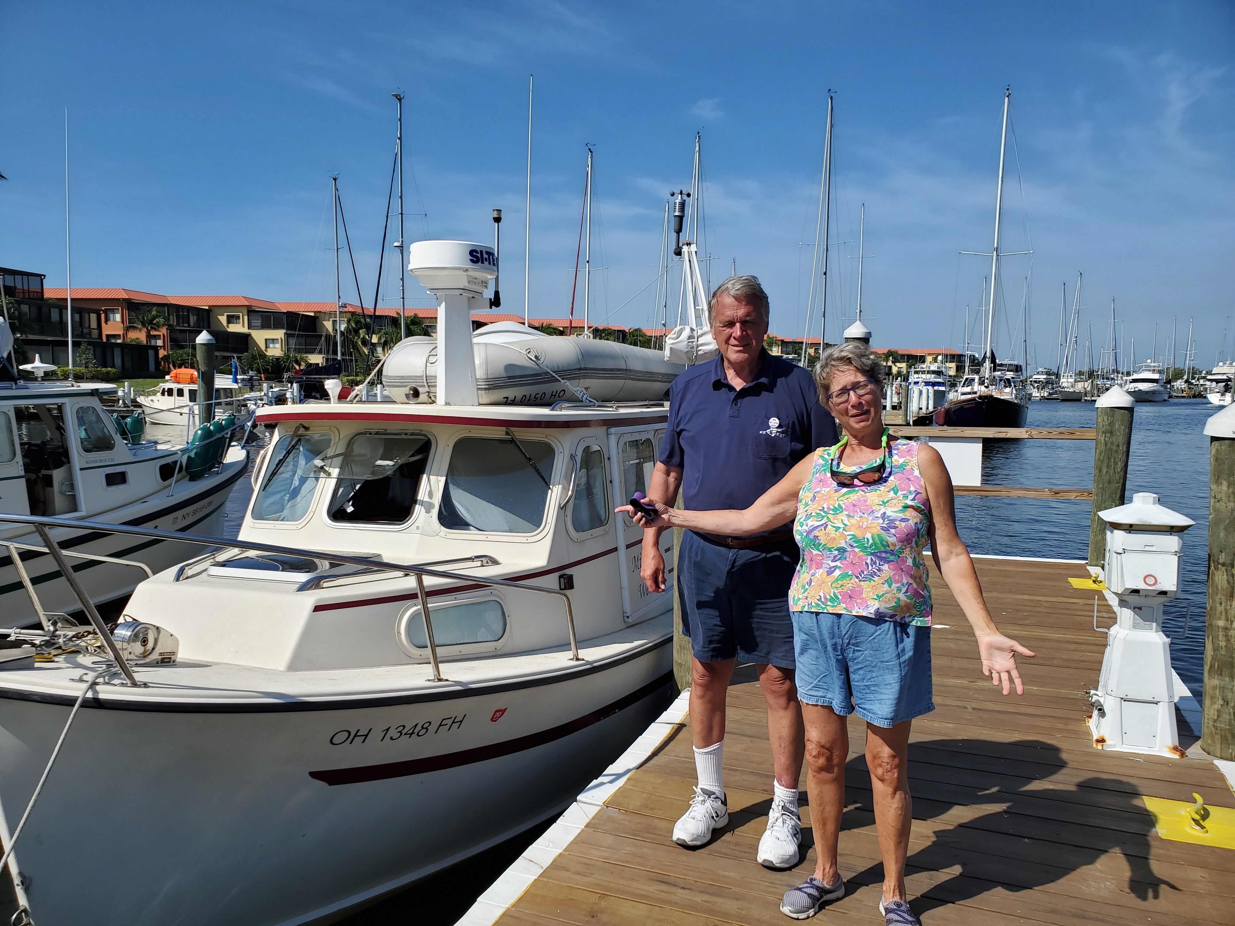 Each crew had different stories to tell as to how they use their boats. Like many Rossi owners, John and Susan Coppedge began their cruising history in a sailboat. Although they divide their time between the Northwest, Florida Keys and elsewhere, they have a special affinity for the waters of the Northwest. They have voyaged as far north as Glacier Bay, Alaska, and report that they can be self-sufficient on their Rossi for two weeks at a time. Accomplish such a feat, Susan explained, requires managing the Five Basics: battery, gas, water, food and pump out. They started a blog named after their boat, Mighty Wench, primarily to keep concerned loved ones in the know on their whereabouts while cruising. Their blog has become a popular resource for the trawler community.