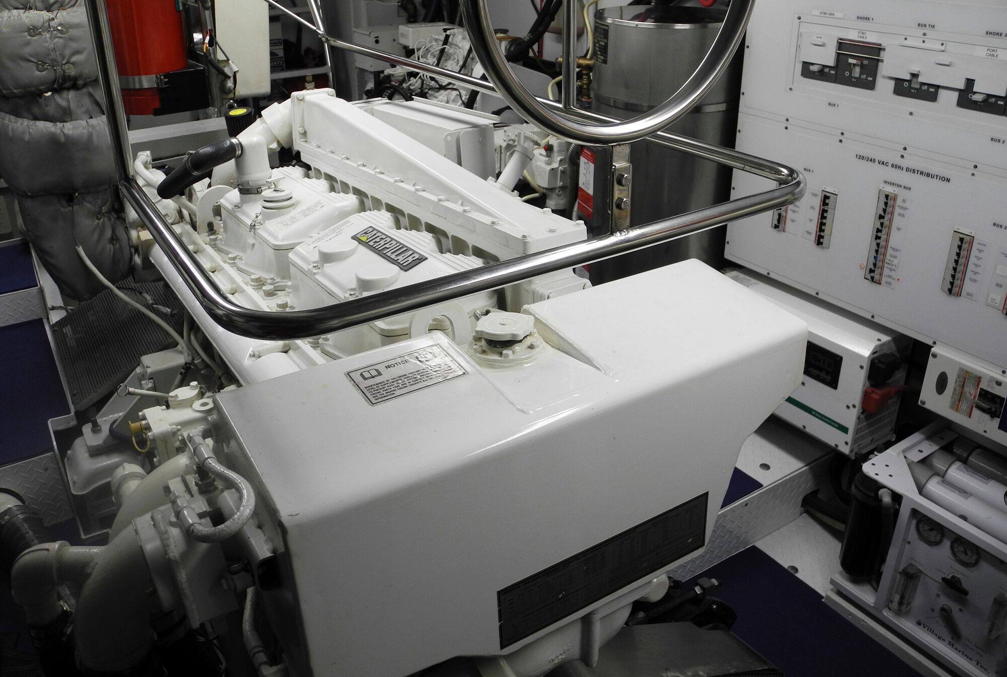 Of course, many larger powercraft use hydraulic power take-offs from a generator to turn the prop shaft in case of a breakdown. If the main propulsion, a 440-horsepower Caterpillar 3406, fails on Edward J, Coffey can operate both gensets and parallel their power take-offs to run the take-off drive. The shaft is harnessed to the take-off drive with a pair of beefy sprocket-and-chain assemblies. Coffey says this system can push Edward J at 5 knots.