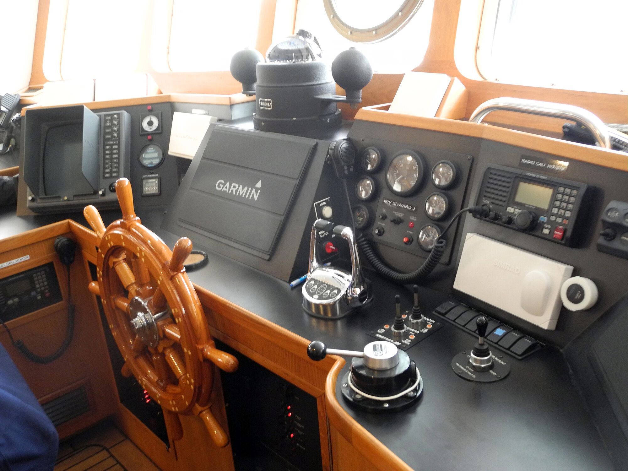 To augment conventional windshield wipers, Edward J employs a clearview screen, commonly found on fishing trawlers. The system uses a heater and centrifugal force to keep ice, snow, and heavy rain off the glass. Coffey says it’s also useful for eliminating condensation during foggy days up north.