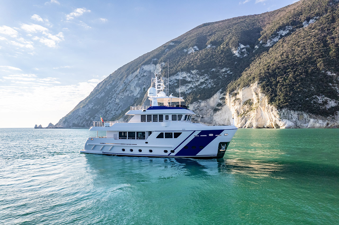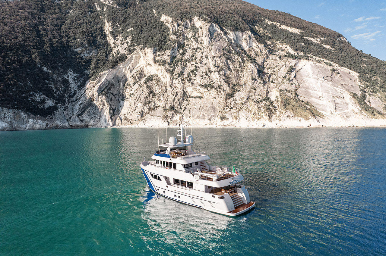 Italy’s Cantiere delle Marche shipyard launched this Darwin Class, 86-footer called Empire last summer.