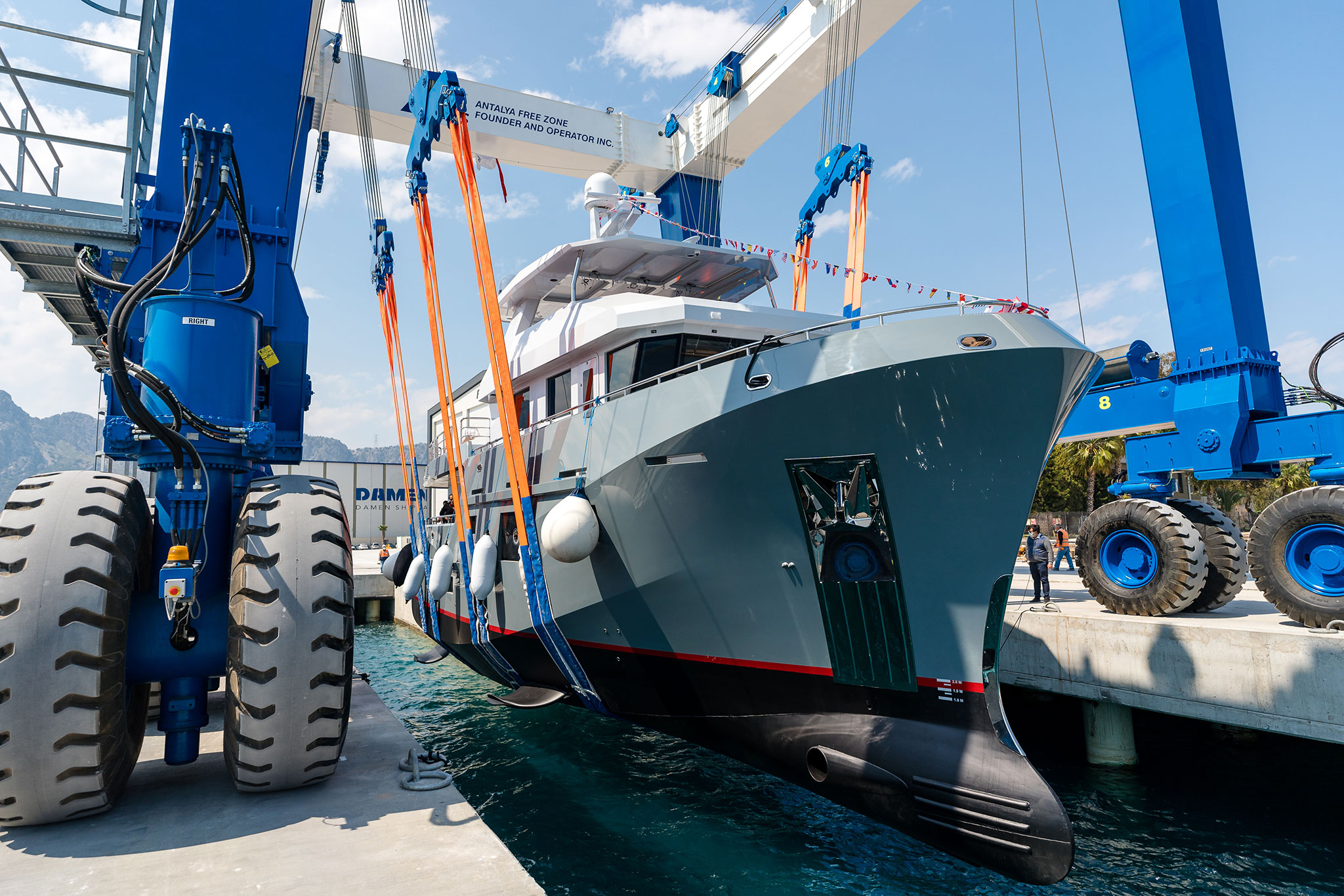 On June 14th, at the Bering shipyard in Antalya, Turkey, the fully custom B76 Lemanjá left the shed and touched water for the first time.