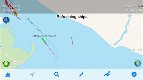 Now here’s a truly different boating app screen. Tapping Boat Beacon’s eye-like Live View button starts Flir One live video with the selected AIS target’s name and bearing overlaid for positive identification.