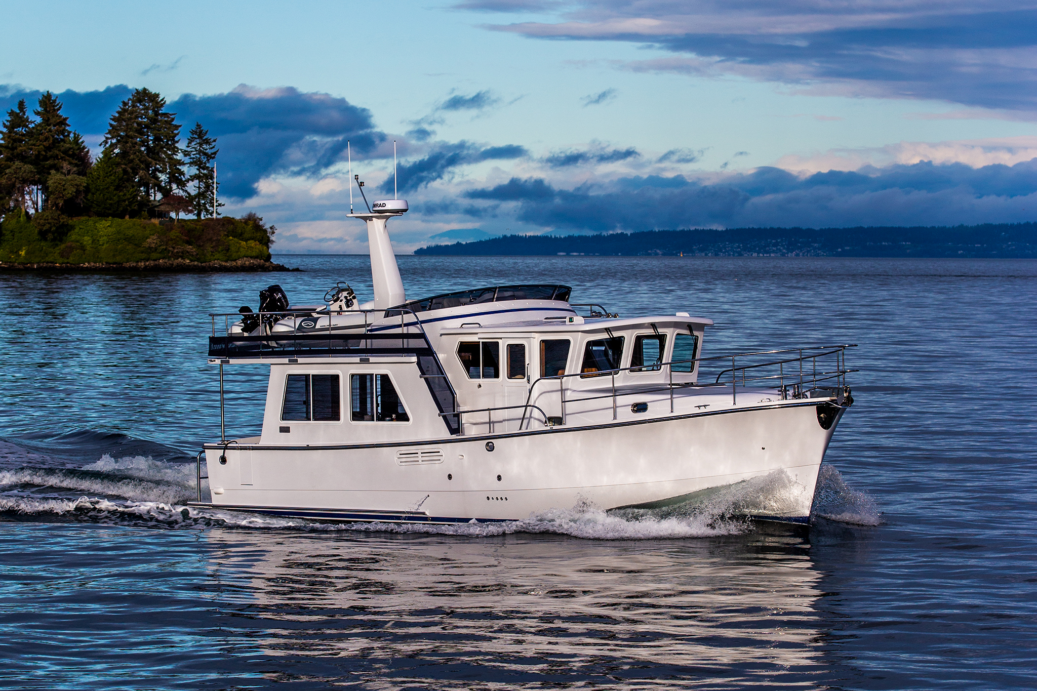 The semi-displacement, full-keel Helmsman 43E Pilothouse does just what a trawler is supposed to: She goes the distance.