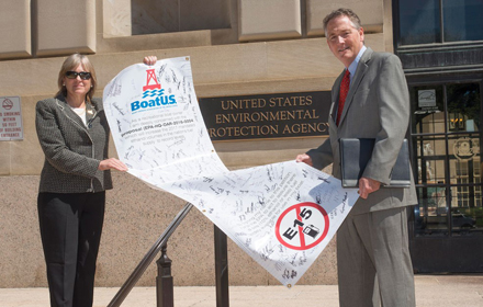 BoatUS president Margaret Podlich and government affairs manager David Kennedy delivered more than 24,000 comments last week from boaters who want the Environmental Protection Agency to