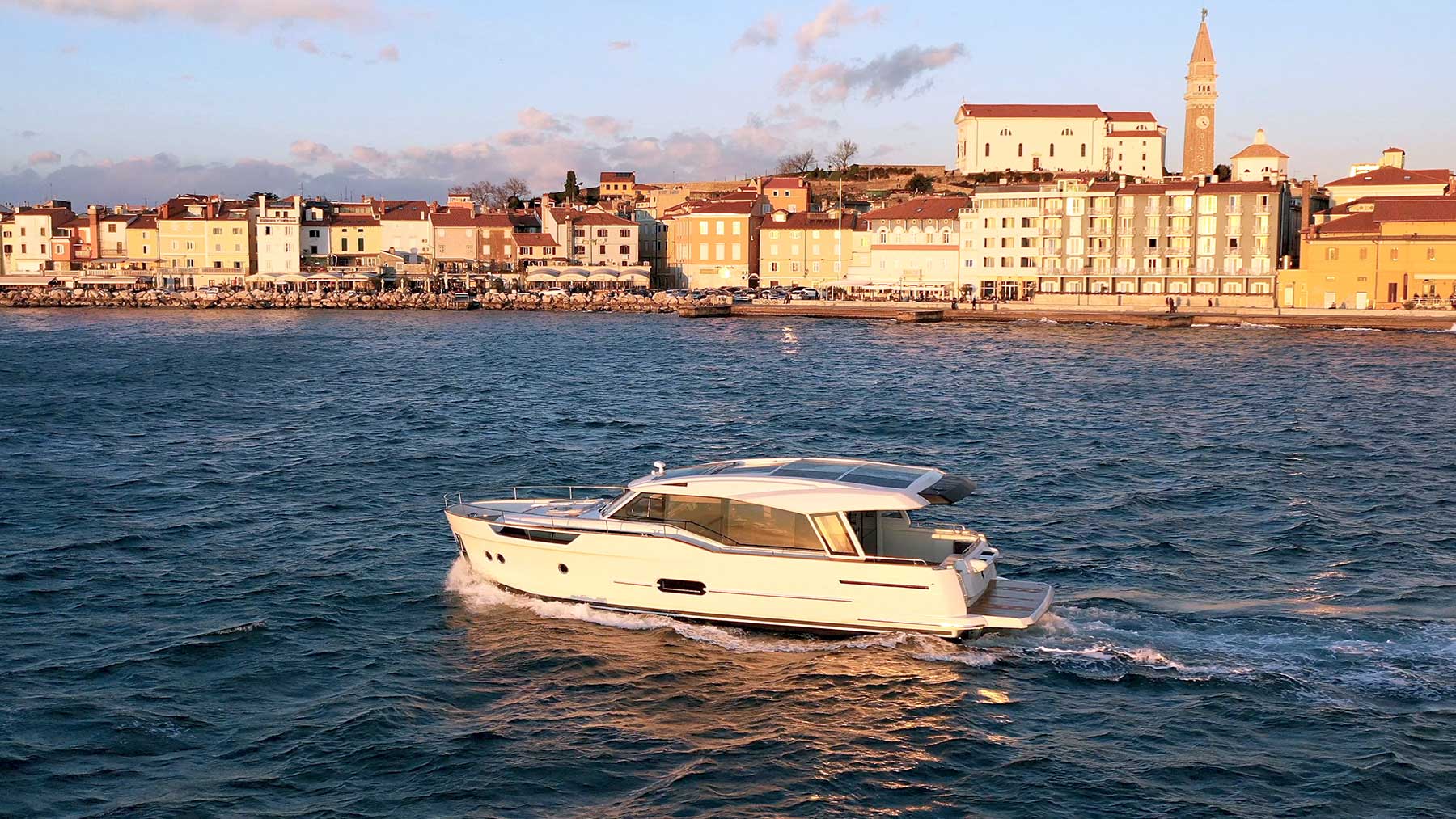 The Greenline 45 Fly Hybrid will do 6 knots electric-only top speed and does a electric-only cruise at 4 knots