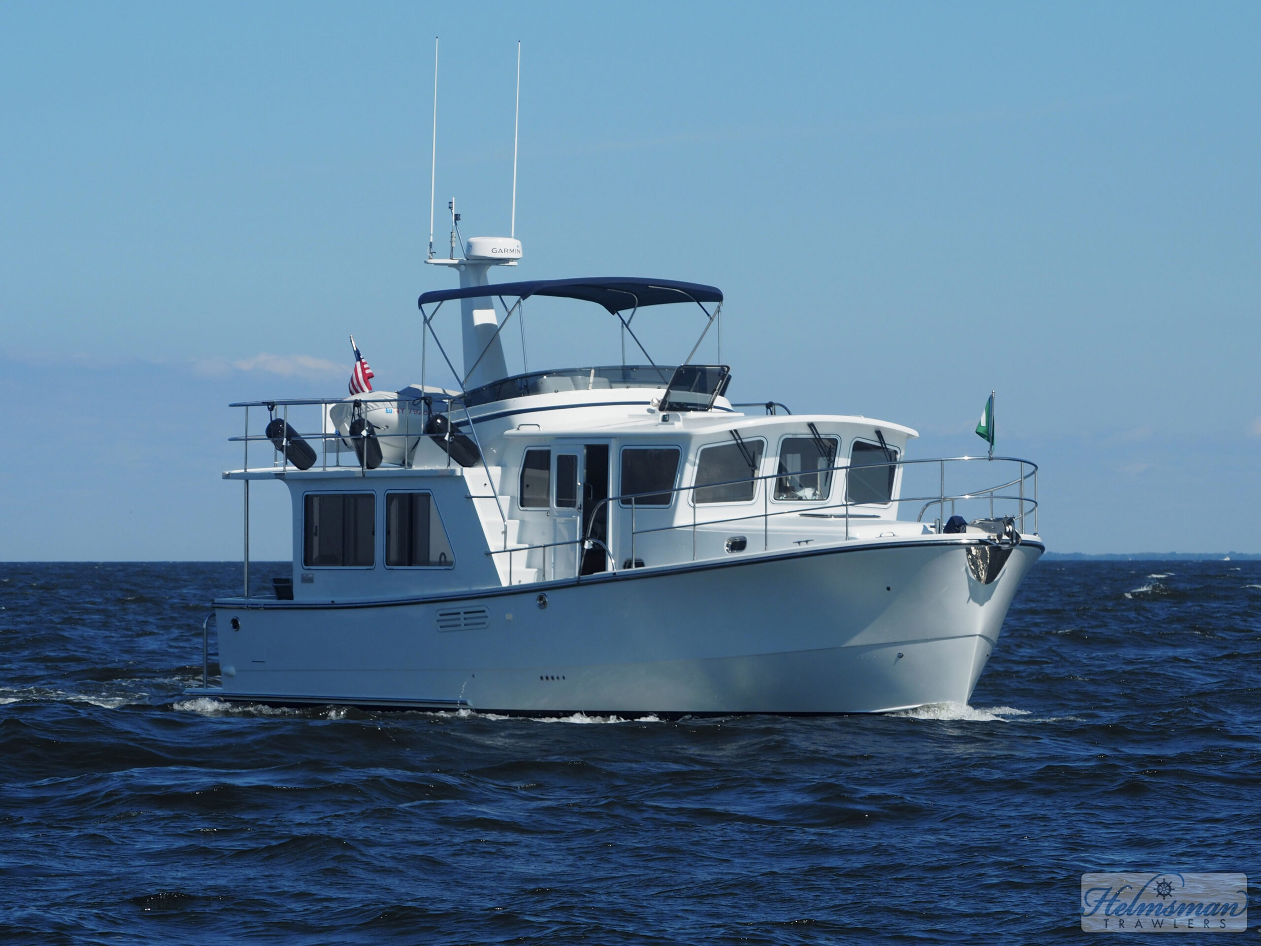 The semi-displacement, full-keel Helmsman 43E Pilothouse does just what a trawler is supposed to: She goes the distance.