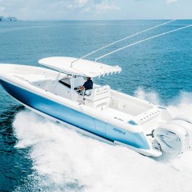 The Intrepid 345 Valor introduces all the luxury of a larger yacht in a 34’6” package. This sleek walkaround vessel boasts a fuel capacity of 320 gallons, and is fully loaded with all the features and amenities you need to have a great time out on the water.