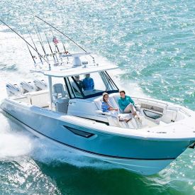 Engineers at Pursuit know a few things about boats designed for many purposes. This builder was one of the first to put cruising features on its center console models when demand for the combo really started to pick up steam a decade ago.