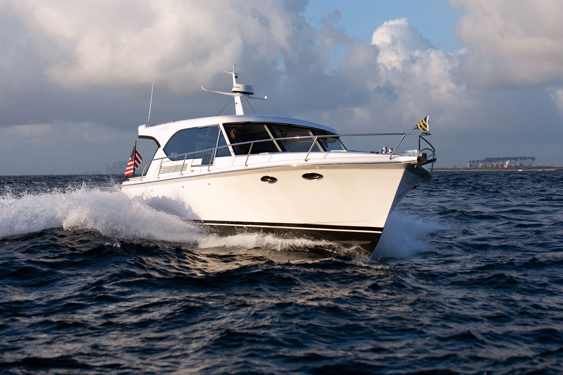Diesel outboards give the classically styled new Hylas M47 sprightly performance.