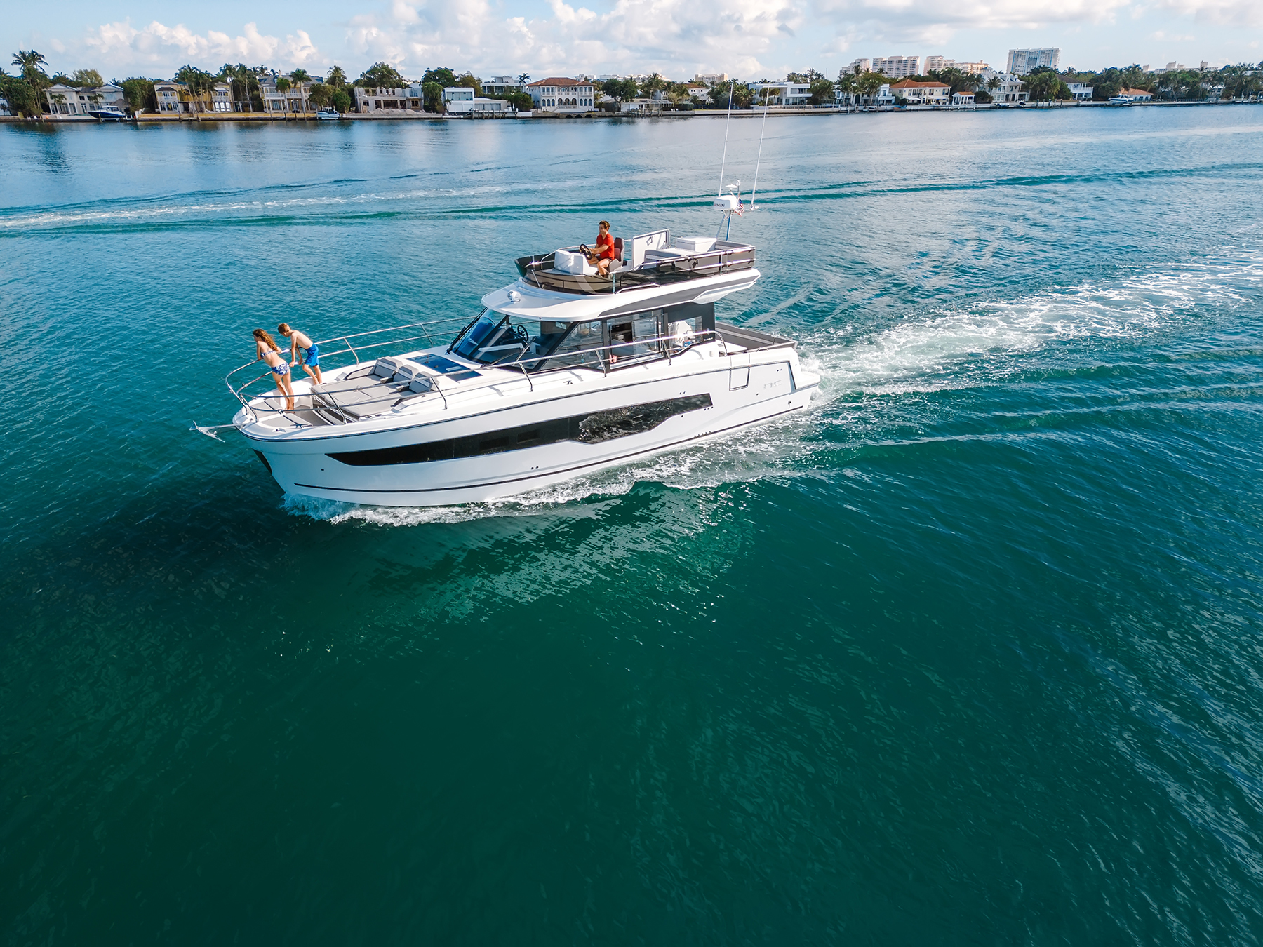This outboard-driven French yacht has plenty of room for families to play and entertain guests.