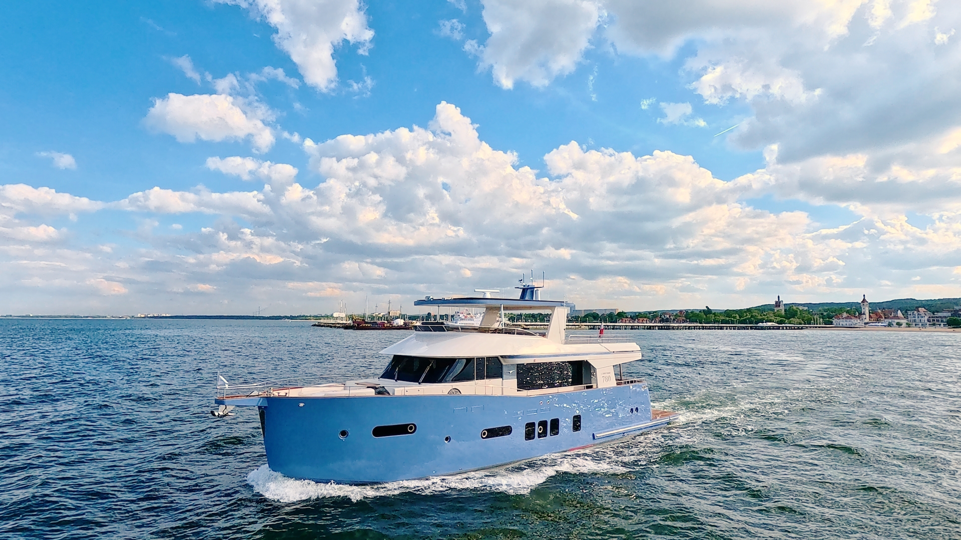 The Poland-based shipyard splashes a fast-displacement model with a host of semicustom features.