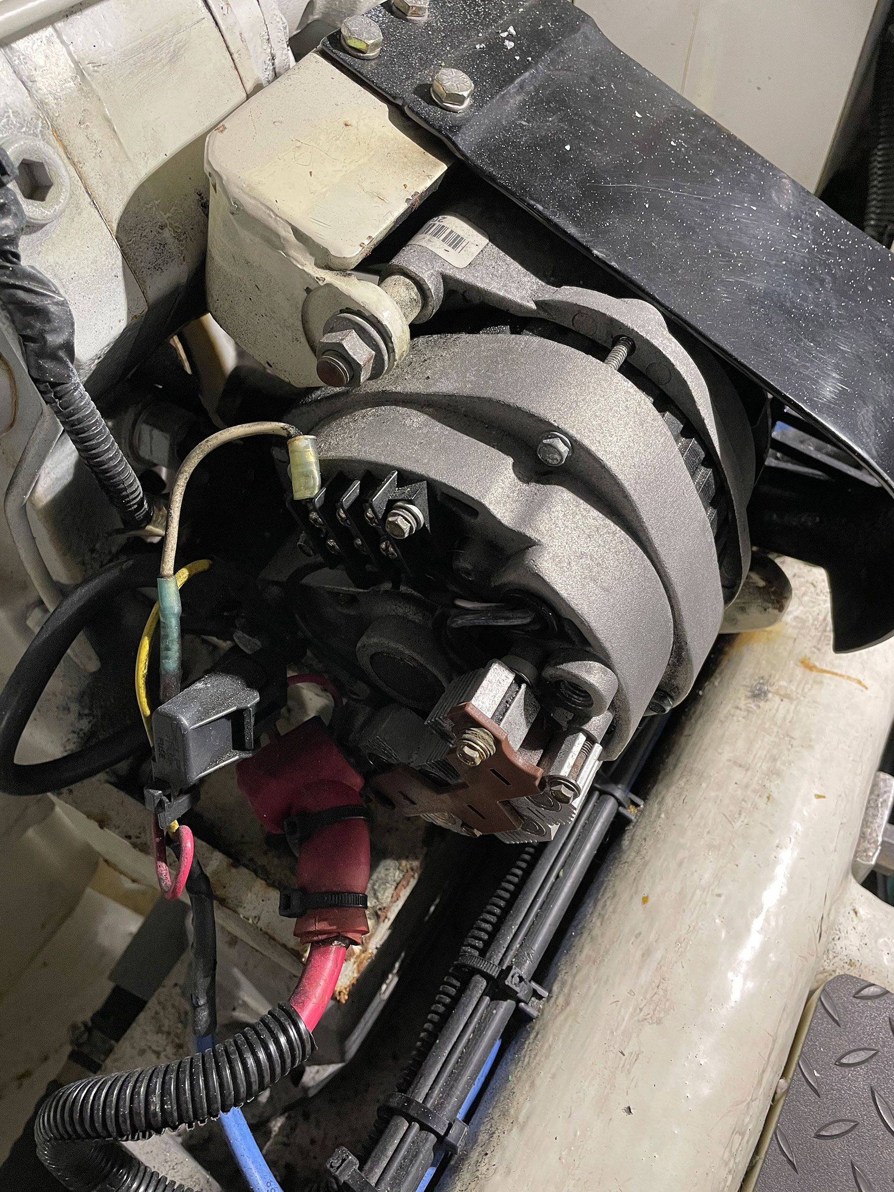 On a boat, we have a different scenario. We’re asking the alternator to keep up with current house loads and recharge any amperage used the night before. The next morning, we want to run the engines for as short a time as possible to recharge the batteries (if we aren’t traveling that day). This calls for a larger alternator that can supply a sustained high output without overheating. A sophisticated regulator and a battery bank that can take that larger charge quickly are also necessary, especially if we’re trying to recharge 696 amps from our example above.