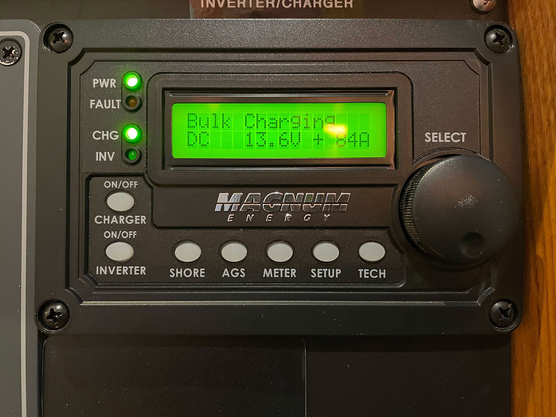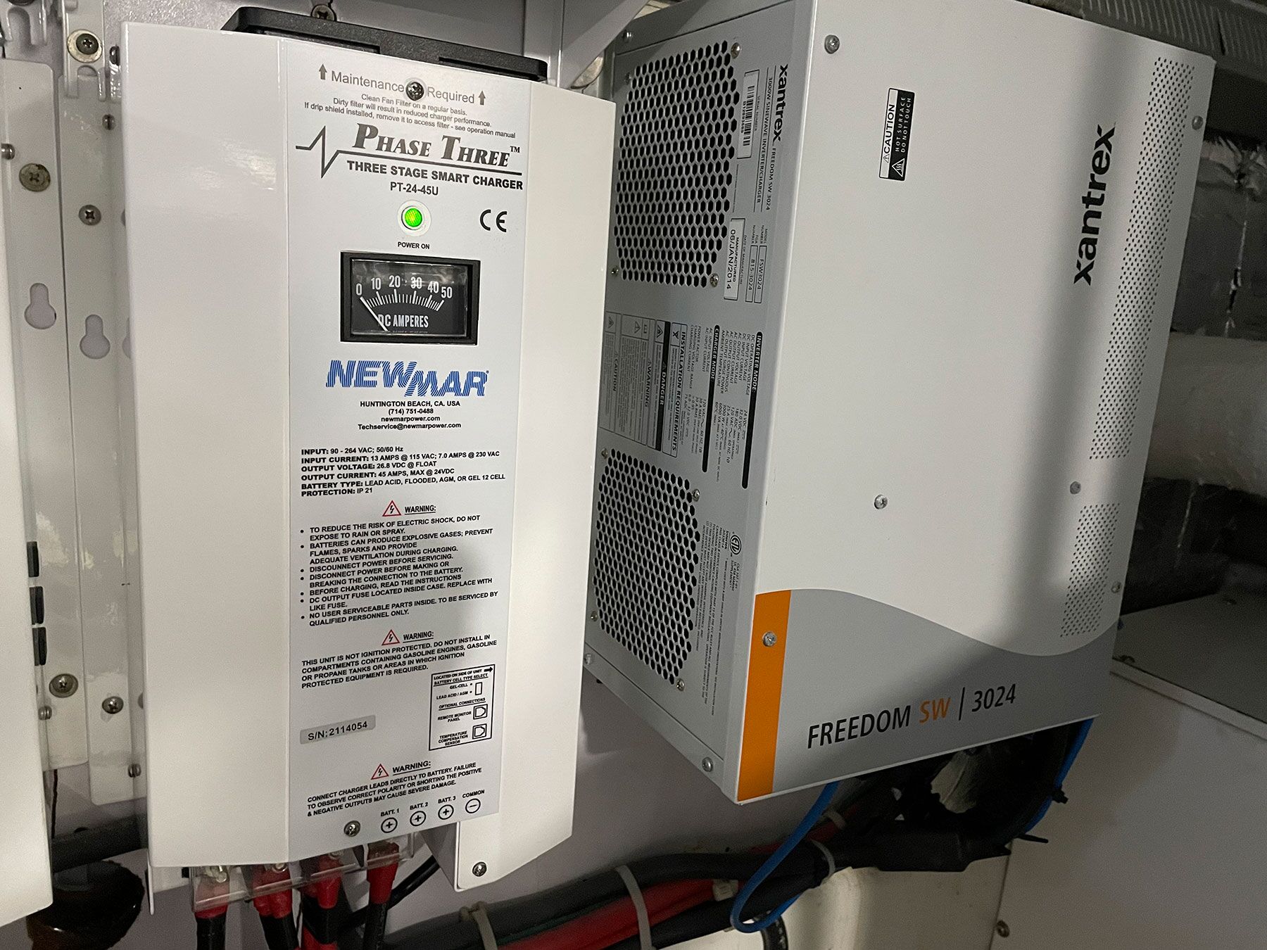 The good news is that we’re already going to need an inverter to run the a/c, and inverters that double as chargers are readily available. Inverter/chargers with 100-amp chargers are not uncommon. With 775 amps to replace in our bank, we may decide that a second charger also makes sense to reduce the recharge time.