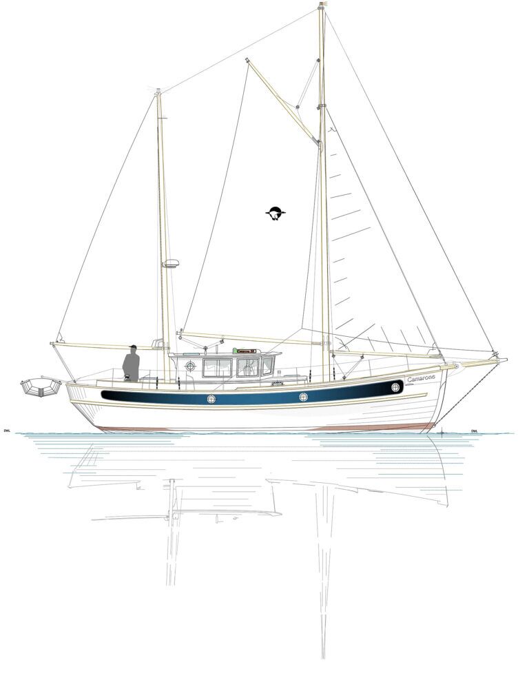 The aesthetics of a spooned transom are timeless. This feature is an elegant, graceful way to complete a design. I appreciate how a fantail makes the mass of the ship seemingly disappear in a narrow, rounded transom, and I’m pleased with the way the boat floats—with the countenance of a royal.