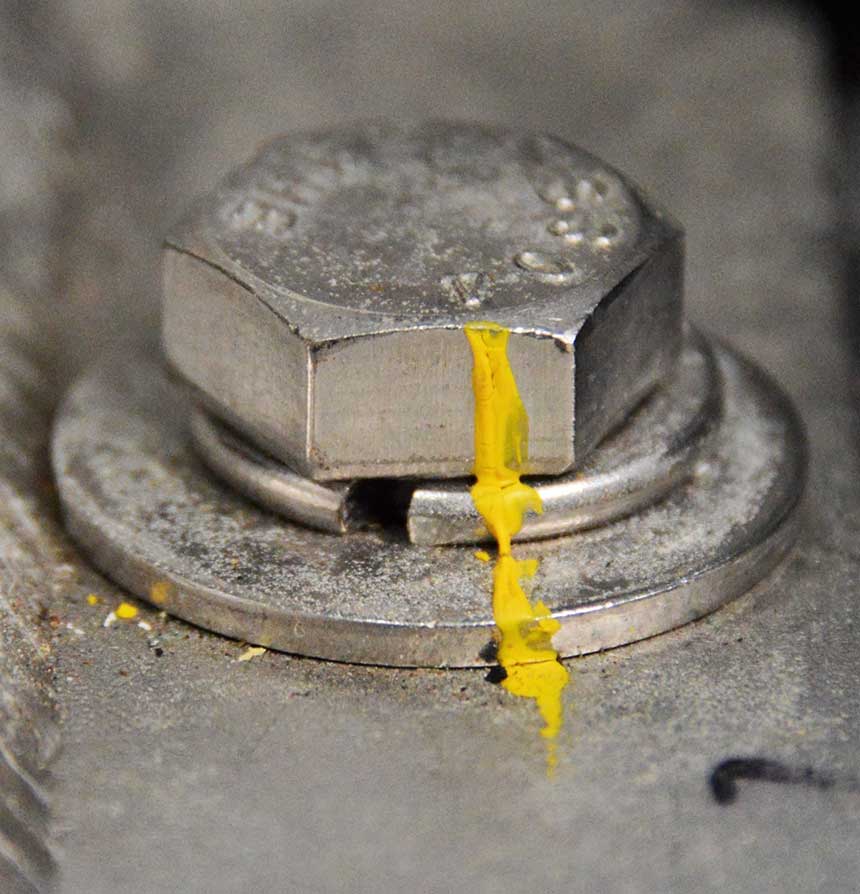 The mounts will settle slightly after installation. When the final in-water engine alignment has been completed, place a witness mark on each stud and nut so that any loosening will be easily detectable.