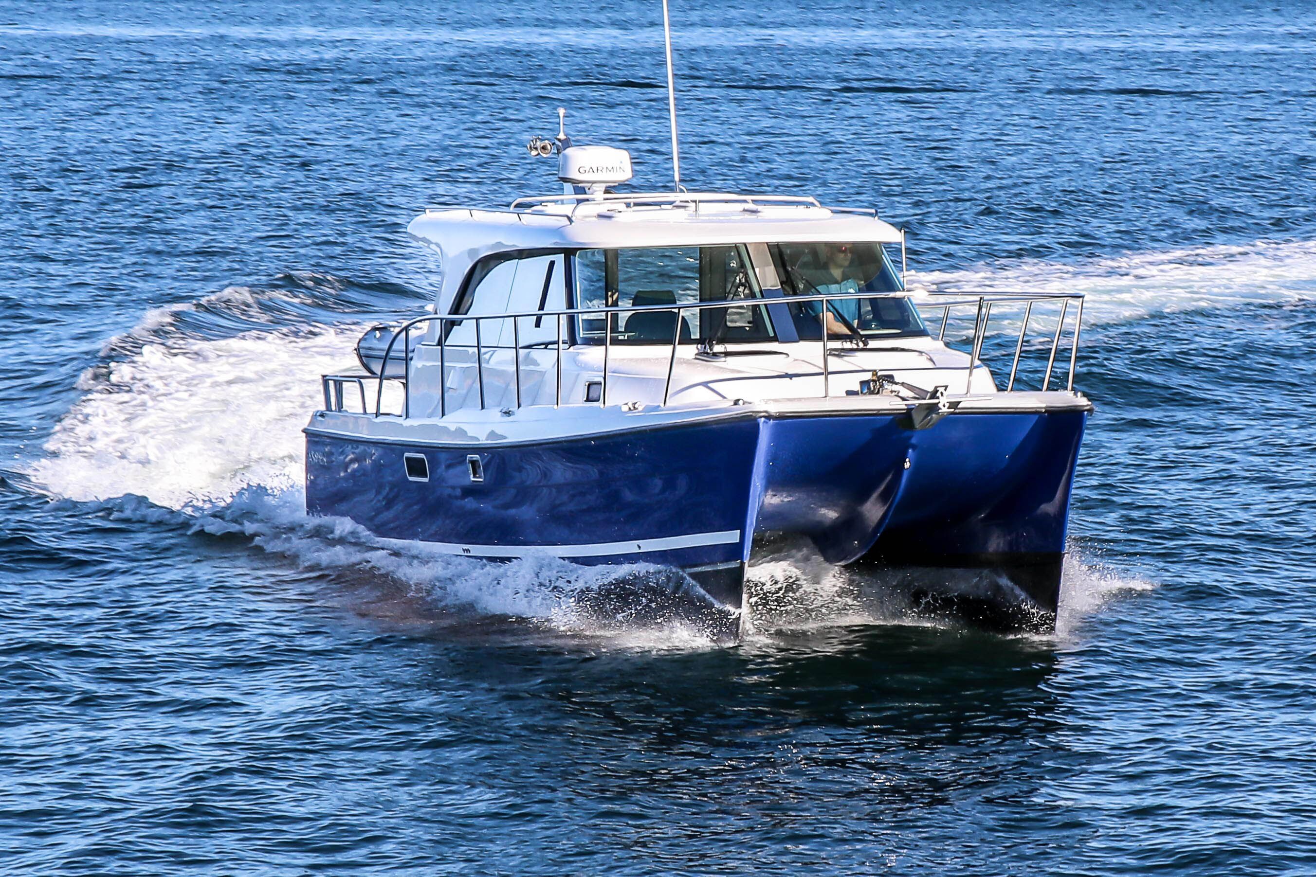 DP: Monohulls maneuver better because you’re not dealing with two hulls. They can make sharper turns and navigate much more easily through narrow channels and tight spaces. Plus, their higher hull displacements reduce the adverse effects of crosswinds in tight conditions.
