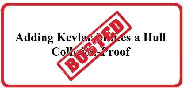 Contrary to popular marine industry myth, adding a layer or two of Aramid fibers (e.g. Kevlar) to a laminate does not turn it into a super-material, able to sustain with impunity collisions at sea with steel containers and other potentially dangerous flotsam.