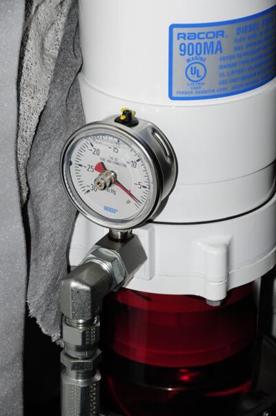 After making certain that your filter meets fire resistance guidelines, you may wish to add accessories that will further improve its functionality and ease of service. A vacuum gauge can be used to both determine the condition of the filter element as well as troubleshoot the fuel supply system. Ideally, vacuum gauges should be permanently plumbed to the filter’s outlet plumbing rather than installed in place of the T-handle.