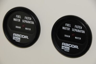 The final accessory is a water sensor probe and attendant helm-mounted audio-visual alarm console. Racor turbine fuel filters are capable of performing near-miracles when it comes to water removal, however, there’s one thing they can’t do, drain themselves of water.