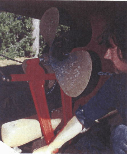 Once the condition of the prop has been assessed, the technician then moves the prop to another table equipped with a pneumatic ram. The ram applies several hundred pounds of pressure, rigidly securing the propeller to the table while the propeller is adjusted. The adjustment for smaller propellers- those under about 30 inches in diameter—is strictly an application of brute force, although it’s applied with a large degree of finesse. The manual tools of the trade are a series of hammers whose heads range from soft rubber, lead, copper, and brass to hard stainless steel. For larger propellers, pneumatic pistons can be used to bend, torque, and tweak a propeller’s blades. Still, this is a hands-on business practiced by those who are able to artfully swing a mallet and wield a disc grinder.