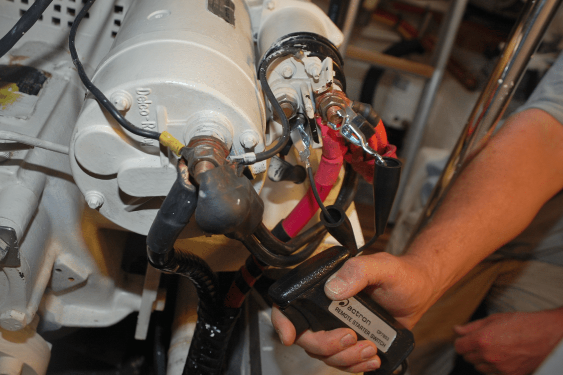 If you do not have the time or the ability to track down the cause, you can bypass the control circuit and trigger the solenoid manually. For these situations it is good to have aboard a simple and inexpensive device known as a mechanic’s remote start switch (available at NAPA, Sears, etc.) A pair of wires with spring clips will also work and in many configurations the same can be accomplished using an insulated screwdriver. The remote start switch is the safest method.
