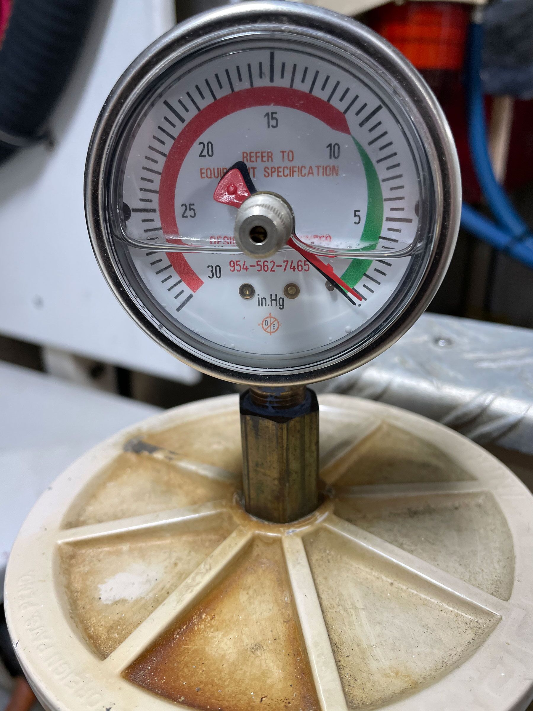 Obviously, if you’re monitoring your vacuum readings regularly, you’ll want to remedy any dirty fuel or filters long before vacuum readings reach this value. This is also a good test to confirm that the vacuum gauge is working. Needles have been known to stick at zero, masking any future vacuum problems.