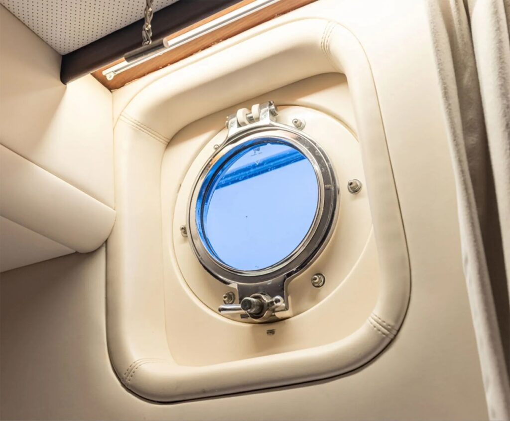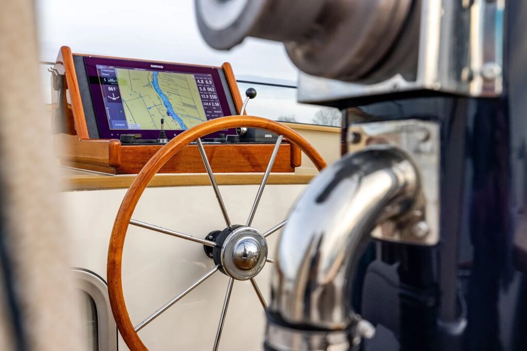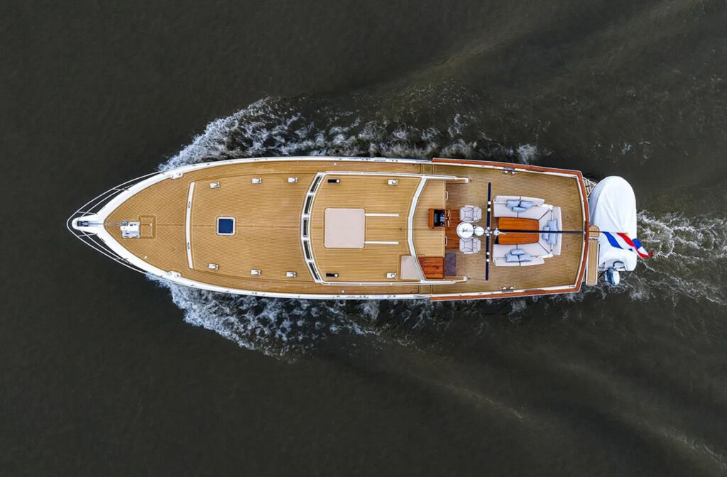 “It’s a new boat in an old suit,” Koopmans says. “Everything is brand-new. There’s not an old part on the boat. The windows were the only original thing, and [they] swapped those last year because two of them were leaking.