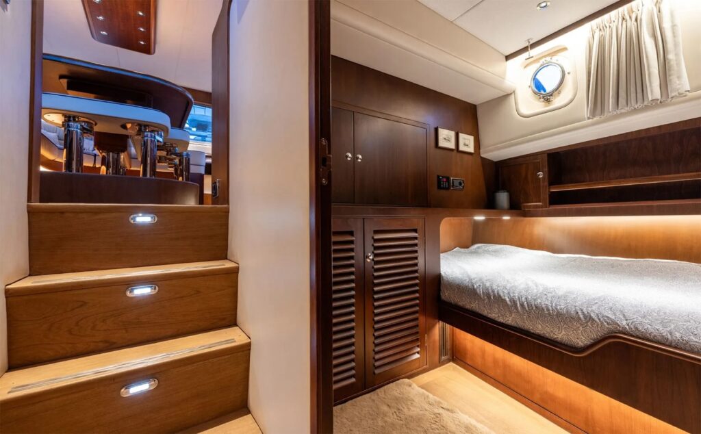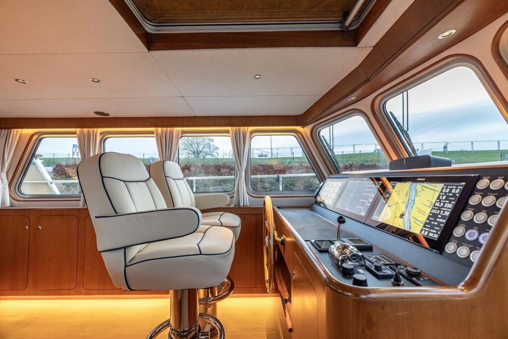 The refit process, oversaw by Koopmans’ Zeelander Yachts yard, is fit with systems that are superyacht-quality. She was sandblasted multiple times, painted twice, reupholstered twice, repowered, rewired, and outfitted with stabilizers and a bow thruster.