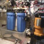 D. Prefilters: It is important to remove as much material from the water as possible before it gets to the RO membrane. So, I plumbed pair of ordinary household filters after the feed pump—a 20-micron filter followed by a 5-micron filter. Do not use paper (cellulose) filters. They will break down in sea water and shed particles