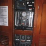 P. Installation: The control panel (Figure 23) was installed in a cabinet in the saloon above the engine room, so the first step was to cut access ports to allow wires and hoses to pass from the control panel to the engine room. Next, the subpanel assembly (Figure 24) was mounted to the port bulkhead in the engine room, more or less under the control panel.