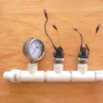 The manifold was made from three 3/4-inch PVC tees (schedule 40) glued together in series. 3/4-inch-by-1/4-inch threaded reducers were inserted into the branch of each tee. Then, the pressure gage and