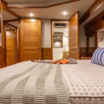 We have designed the layouts of the yacht to offer flexibility without compromising practicality or usability. Available in your choice of two or three stateroom layouts, the accommodations are only a few steps down from the single-level entertaining spaces, making manoeuvring around the vessel effortless.