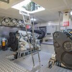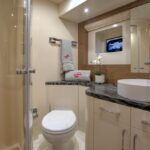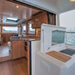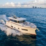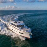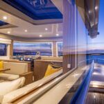 With hull and superstructure design by Germán Frers, the 58 Coupe has a contemporary plumb-bow design, modest freeboard and a fast-displacement hull that yields a range of around 850 miles at 10 knots, while capable of a top speed around 26 knots. With a four-panel door that opens almost entirely, the single-level space flows seamlessly from pilothouse to transom, including a fully shaded aft deck. Additionally, the bi-level forward owner’s cabin has private access to the foredeck lounge.
