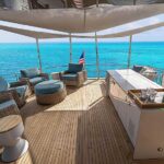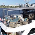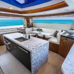 SnowGhost is the next generation motor yacht from Hatteras Yachts. The M90 Panacera series is featured in several Yachting articles and even received 2018 “Best of the Best Award”. This is a fully loaded yacht that features a huge hard top with climate control. The outdoor beach club style spaces with sail shades on the upper aft deck and bow area are amazing for entertaining large groups.